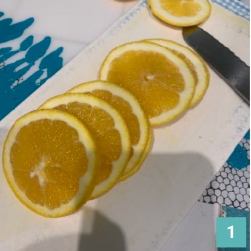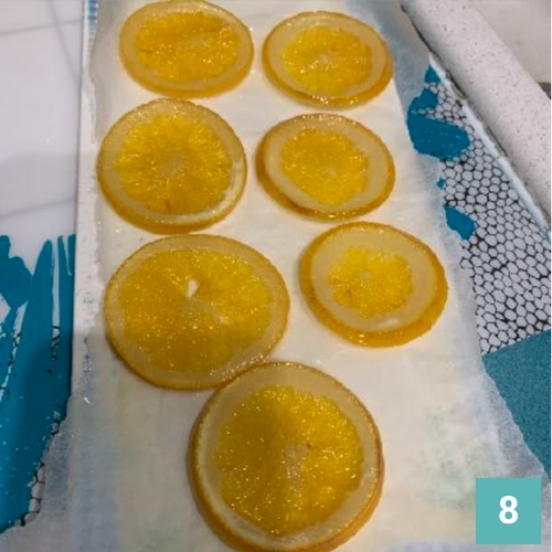 A cottura ultimata, estrarre il tegame dal Grand Chef Evolution e adagiare le fettine di arancia su un foglio di carta da forno[8] in modo da lasciarle raffreddare: dovranno assumere un aspetto traslucido.