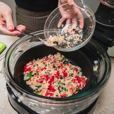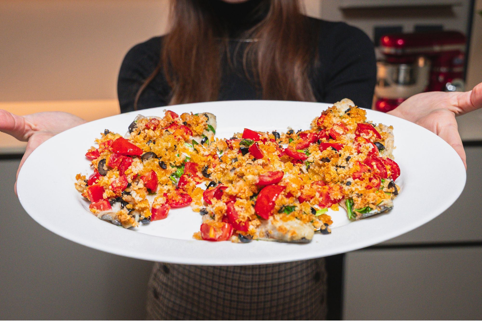 Ingrediente chiave di questa ricetta infatti è la gratinatura, in particolare l’impiego del panko, il tipico pangrattato giapponese a fiocchi: in questo caso non c’è bisogno di prepararlo in anticipo, perché la cottura con circolazione dell’aria forzata di Grand Chef Evolution lo tosterà e gonfierà rendendolo piacevolmente fragrante, aggiungendo una nota croccante al piatto.