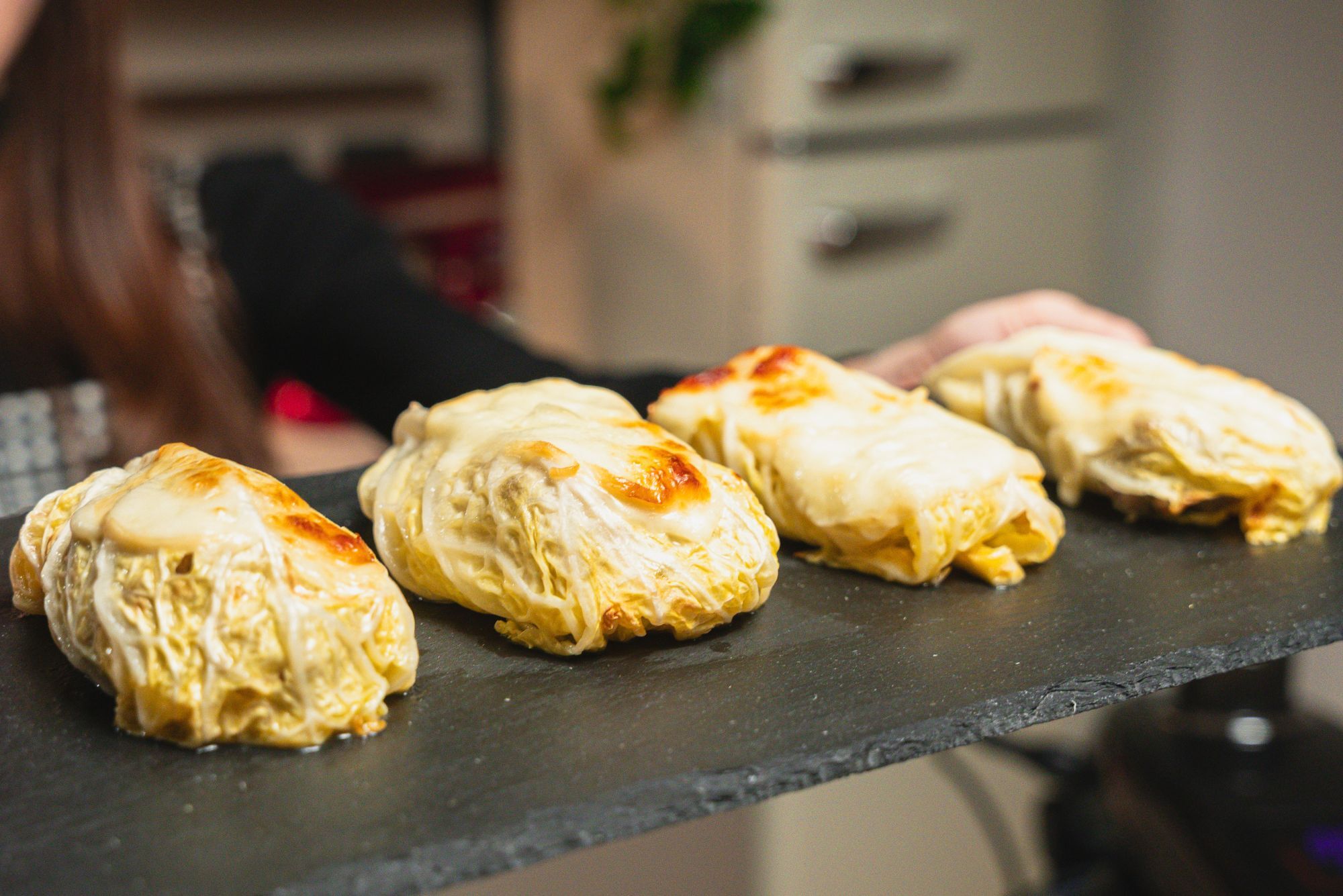 Realizzare questa ricetta è più semplice di quello che sembra: basta organizzare con criterio le diverse fasi, soprattutto la preparazione preliminare degli ingredienti che poi andranno a costituire gli involtini, dalla cottura della verza sino alla rosolatura della salsiccia e la tostatura delle castagne. Per facilitare quest’operazione è possibile cuocere tutti gli ingredienti su tre livelli diversi all’interno della camera di cottura di Grand Chef Evolution, in questo modo risparmieremo tempo e spazio, senza sporcare altre stoviglie e con tutta la praticità di impostare dal display gli stage di cottura. Non solo, una volta che gli involtini saranno pronti, potranno essere ripassati nel tegame Professional all’interno dello stesso dispositivo per la gratinatura finale. Gli involtini si prestano anche a essere preparati in anticipo e poi riscaldati poco prima di servirli, mantenendo intatti gusto e consistenza, sfruttando la comodità della cucina programmata. Accompagnati con un contorno di verdure alla griglia o un puré di patate, diventano un piatto unico nutriente e completo.