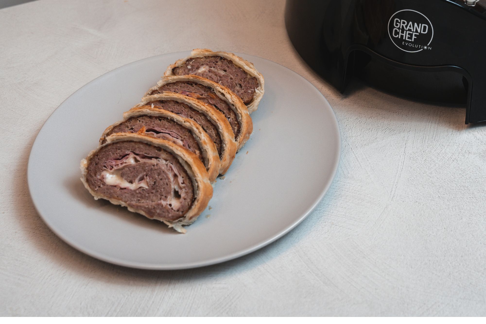 Il polpettone al forno ripieno di formaggio e prosciutto è una soluzione intelligente per chi ama la cucina casalinga ma non vuole rinunciare a un tocco curato. Il composto a base di carne macinata, pane, formaggio e uova accoglie una farcitura di prosciutto cotto e formaggio filante, il tutto ricoperto da un guscio dorato di pasta sfoglia che trasforma questo piatto già sontuoso nel “più bello della festa”. Sì, perché il polpettone in crosta non è più solo il tipico piatto da pranzo domenicale, ma il protagonista assoluto del menù, che si tratti di un brunch salato, un aperitivo informale o un catering elegante. Sicuramente non è una ricetta che si improvvisa: realizzarla è semplice ma richiede un pizzico in più di tempo, poiché consta di diverse fasi. Infatti, dopo una prima cottura parziale, il polpettone viene avvolto nella pasta sfoglia che viene fatta dorare per ottenere un involucro croccante. Grand Chef Evolution può rivelarsi un ottimo alleato per la realizzazione di questo piatto: grazie ai vantaggi della cucina programmata entrambe le fasi di cottura possono essere eseguite al suo interno, sostituendo alla perfezione il forno tradizionale ma con la comodità di non sporcare troppe stoviglie e senza il fastidio di odori persistenti in cucina. La carne all’interno rimane umida e tenera, con un cuore filante, mentre la pasta sfoglia si mantiene fragrante al punto giusto, particolarità che rende questo piatto invitante e irresistibile.