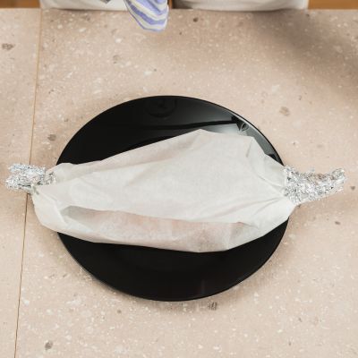 Una volta raggiunta la temperatura, adagiare il cartoccio sulla griglia[15] e far cuocere a 205°C, fan alta, per 15 minuti[16].