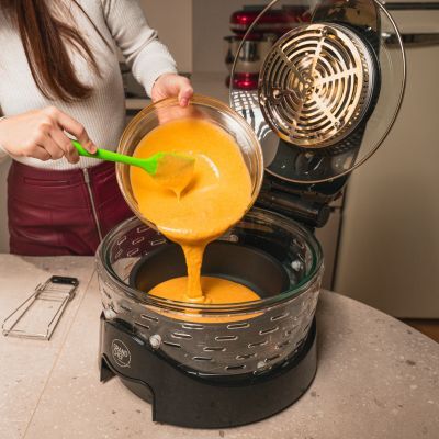 La torta alla zucca, soffice e profumata, è il dolce ideale con l’arrivo dei primi freddi per una confortante merenda in poltrona e con la giusta decorazione può diventare la protagonista per una festa a tema Halloween. Possiamo preparare tutte le fasi di questa ricetta con l’aiuto di Grand Chef Evolution: infatti, oltre che per cucinare la zucca, potremo sfruttare questo elettrodomestico per cuocere la torta come se fosse in forno. Il sistema di cottura basato sulla circolazione forzata dell’aria calda la renderà morbida e leggera, perfettamente lievitata, con tutto il gusto genuino di un dolce fatto in casa.